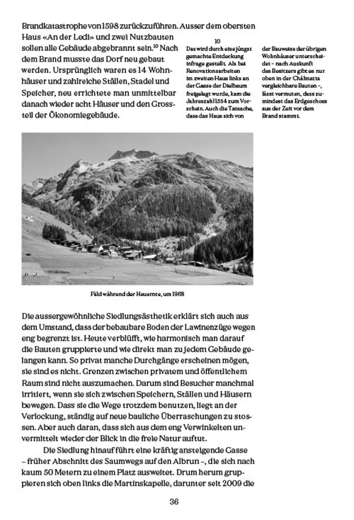 Der Germanist und Historiker Gerold Koller kennt das Binntal aus erster Hand. Er hat die alte Chronik des Binntals von Pfarrer Karl Jost wiederentdeckt, in die Gegenwart geführt und zahlreiche Zeitzeugen befragt. Mit den Fotografien von Nelly Rodriguez, die den Alltag von heute einfangen, bietet das Lese- und Bilderbuch einen faszinierenden Einblick in die Sorgen, aber auch Potenziale des Berggebiets abseits der grossen Touristenströme.