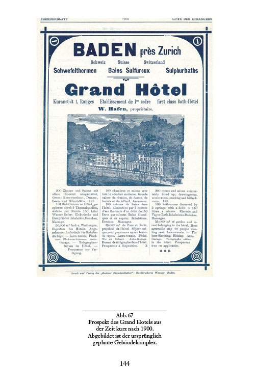 Die Autorin Andrea Schaer führt im Stil eines Bäderführers von der Zeit der Römer bis in die Gegenwart: von den Quellen auf dem zentralen Kurplatz zu den Gasthöfen und Hotels mit ihren verschiedenen Bädern, den Kleinen Bädern auf der rechten Limmatseite, den Spazierwegen und Kuranlagen des 19. Jahrhunderts bis zur heutigen Anlage. Auch das ehemalige Thermalbad von Otto Glaus und die besondere Beziehung zwischen Bädern und Stadt kommen zur Sprache.